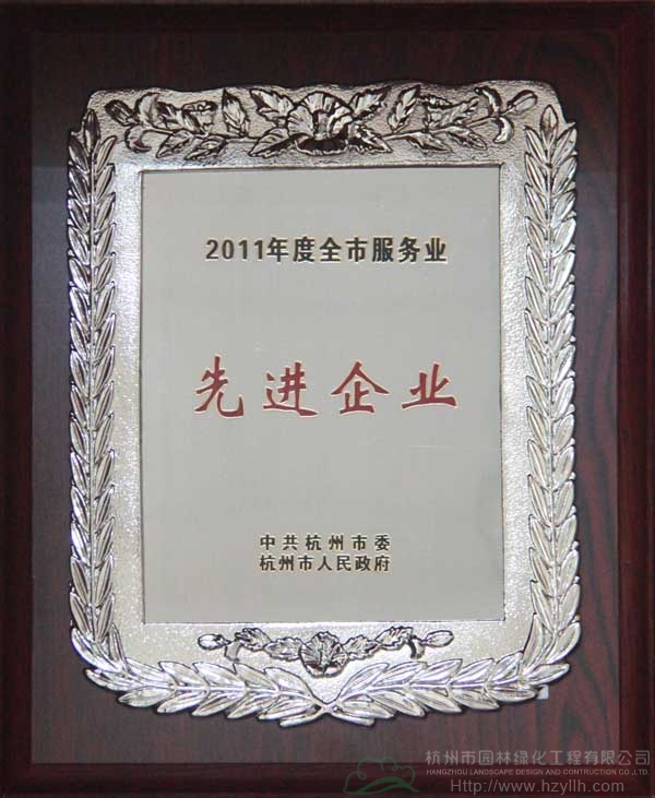 近日,中共杭州市委、市政府对2011年度在现代服务业发展中取得突出成绩的先进单位和个人进行了通报表彰,杭州市园林绿化工程有限公司被授予了“现代服务业先进企业”称号。