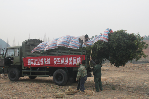 春季是植树造林的好时节,为了给官兵们营造一个绿色、和谐的生活环境,体现拥军、爱军的优良传统,军民携手共建绿色军营,杭州市政府经过多方考察、精心选择,从杭州市园林绿化工程有限公司位于临安泉口的苗木基地选购了一批桂花树送给舟山东海舰队。