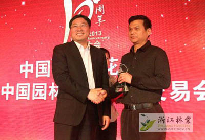 大会揭晓并颁发了“突出贡献奖”、“贡献奖”、“最佳合作伙伴奖”、“2013年优秀参展奖”、“2013年产品金奖”等多个奖项,以此表彰一批多年来为中国(萧山)花木节的成功举办做出积极贡献的个人和单位。其中,杭州市园林绿化工程有限公司荣获“最佳合作伙伴奖”、“2013年优秀参展奖”,参展的产品“红宝石”紫薇和“火炼金丹”桂花荣获“2013年优秀产品奖”,总经理张炎良上台领取了奖牌。