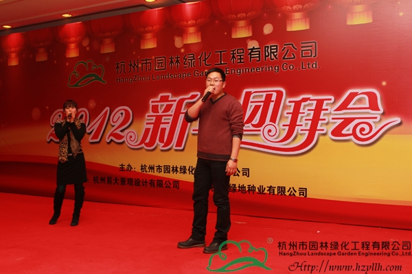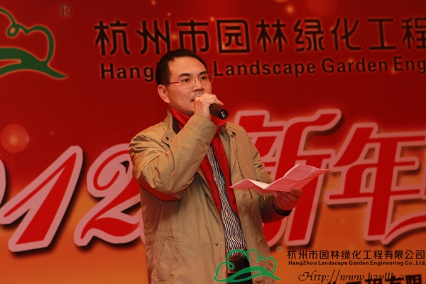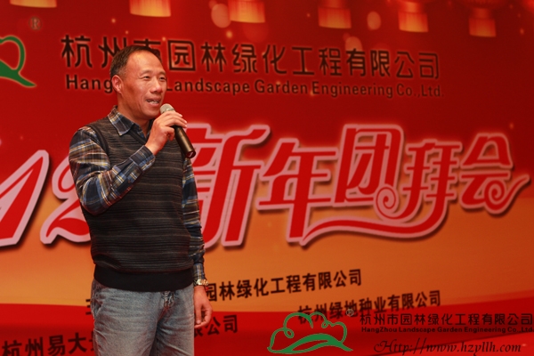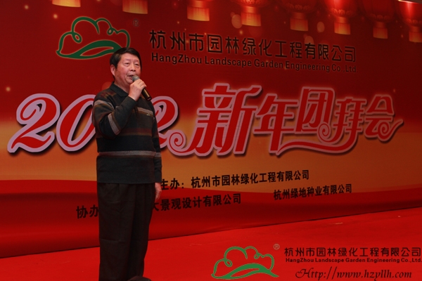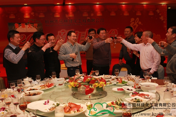 表彰仪式结束后,董事长吴光洪发表了新年致词。吴董首先对各位领导和嘉宾的到来表示了热烈欢迎;然后与大家共同回望了企业2011年所取得的成就,并对2012年的发展进行了规划和展望,他感谢大家对杭州园林一路的支持与关注,希望未来仍能与大家一起携手前行;最后,吴董举起手中的酒杯,与大家一起为新的一年干杯,并宣布晚宴正式开始。