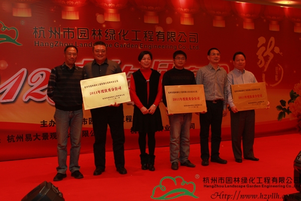 随后,公司常务副总李寿仁宣读了对获得2011年度国家及省、市优秀园林工程奖的项目部进行通报表彰的文件。共有7个工程荣获中国优秀园林绿化工程金奖、浙江省优秀园林工程金奖、2011年度杭州市标化工地等奖项,7个项目部和负责人受到了表彰。