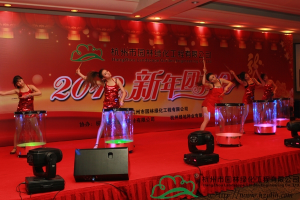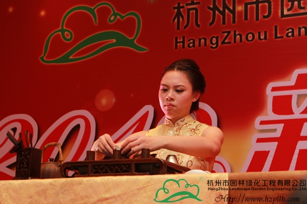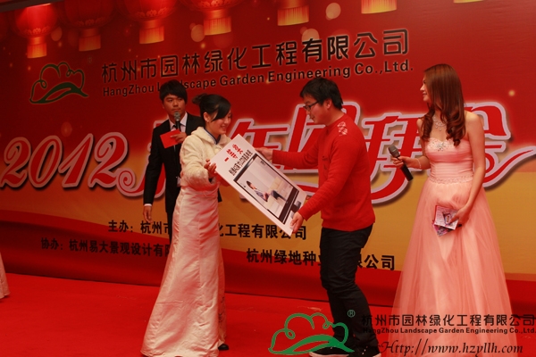 随着晚宴的开始,精彩的节目表演也拉开了序幕。一曲热情激昂的鼓乐《中国龙》,营造出了龙年吉祥喜庆的节日氛围,随后,唯美的独舞表演、深情的情歌对唱、优美的葫芦丝吹唱,功夫茶道、诗词朗诵、搞笑小品……一个又一个精彩节目,将现场的气氛一次次推向高潮。而期间最令人期待的,是现场的抽奖环节,一等奖的42寸高清液晶电视机、二等奖的皇冠寝室羽绒被、三等奖的博洋家纺四件套,丰厚的奖品让每个人都期待着幸运的降临,随着一组组数字的公布,抽到奖的人一个个欢喜雀跃,兴高采烈地领走了奖品,现场成为一片欢乐的海洋。最后,投标中心的一曲《明天会更好》,传达了所有人对2012年的美好期待和祝愿,也预示着杭州市园林绿化工程有限公司2012年新春团拜会的圆满成功!