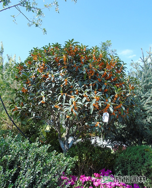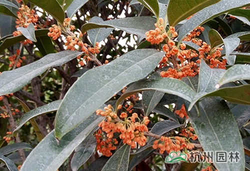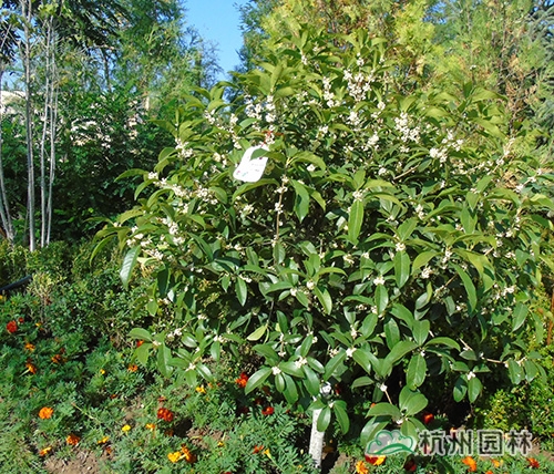 “浙江园”里应用的桂花品种以丹桂和银桂为主,共计50余棵,包括大乔木和小球类。为保证开园期间的观赏效果,这些桂花被提前运送至银川,利用当地的低温环境诱使其完成花芽分化,终于在九博会开园时营造出了桂花满树、满园飘香的氛围。