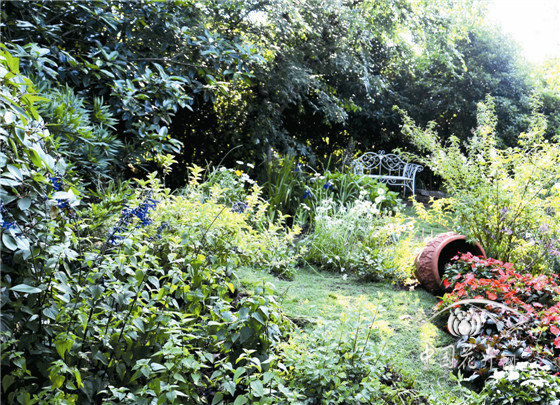“芳满庭”位于杭州临安画境•青山湖花园中心室外展示区内,桂花、榉树、狭叶十大功劳、冬青等植物长势良好,形成了全光照环境、林缘环境、郁闭环境等多种光照空间。在现有庭院布局基础上,结合外围的木香藤架,营造色彩艳丽的花境景观;内部以蓝紫色为主色调,结合原有郁闭环境,营造出人们热爱生活、向往美好的乡村私密花园美景。该花境作品荣获“首届中国花境竞赛”金奖。