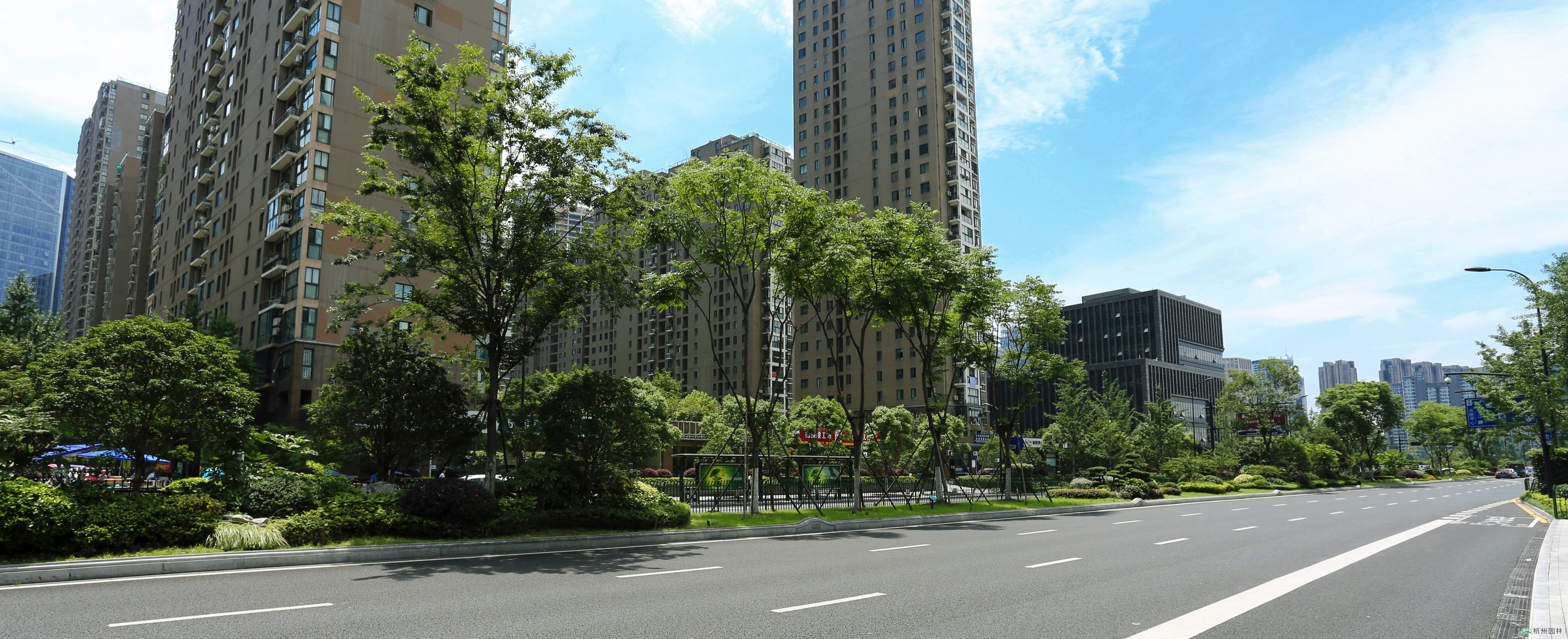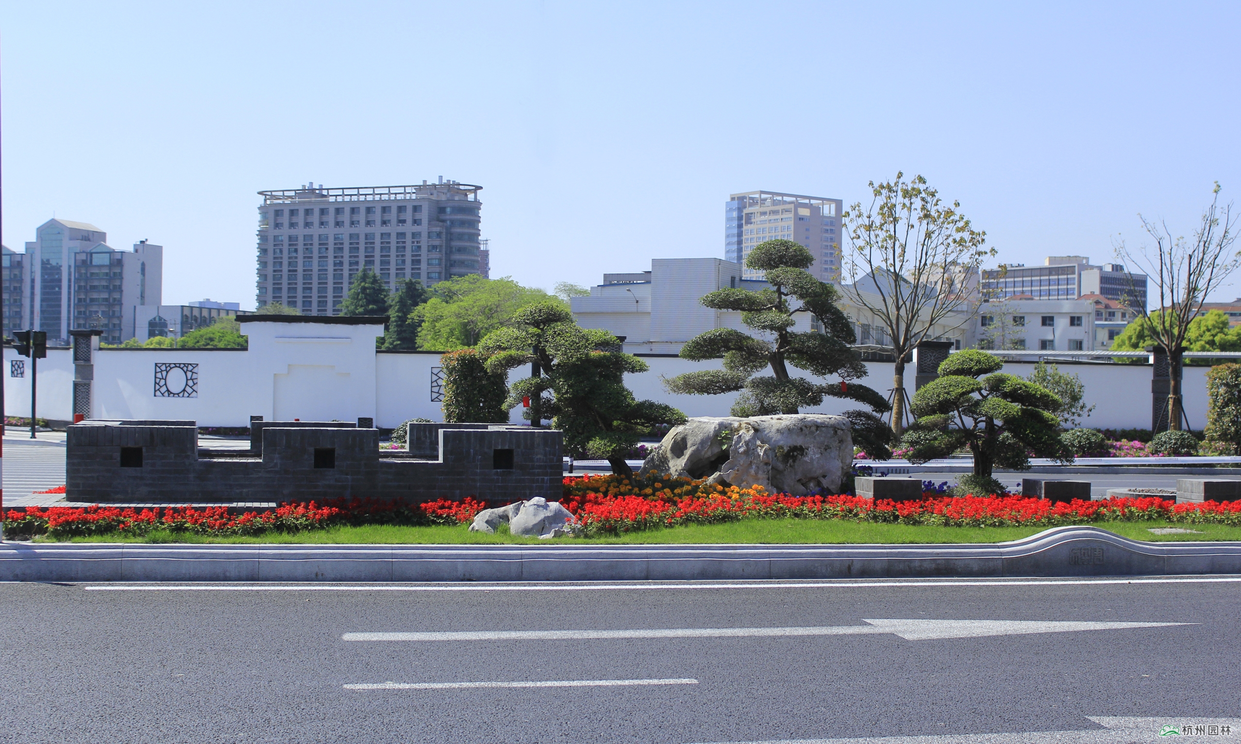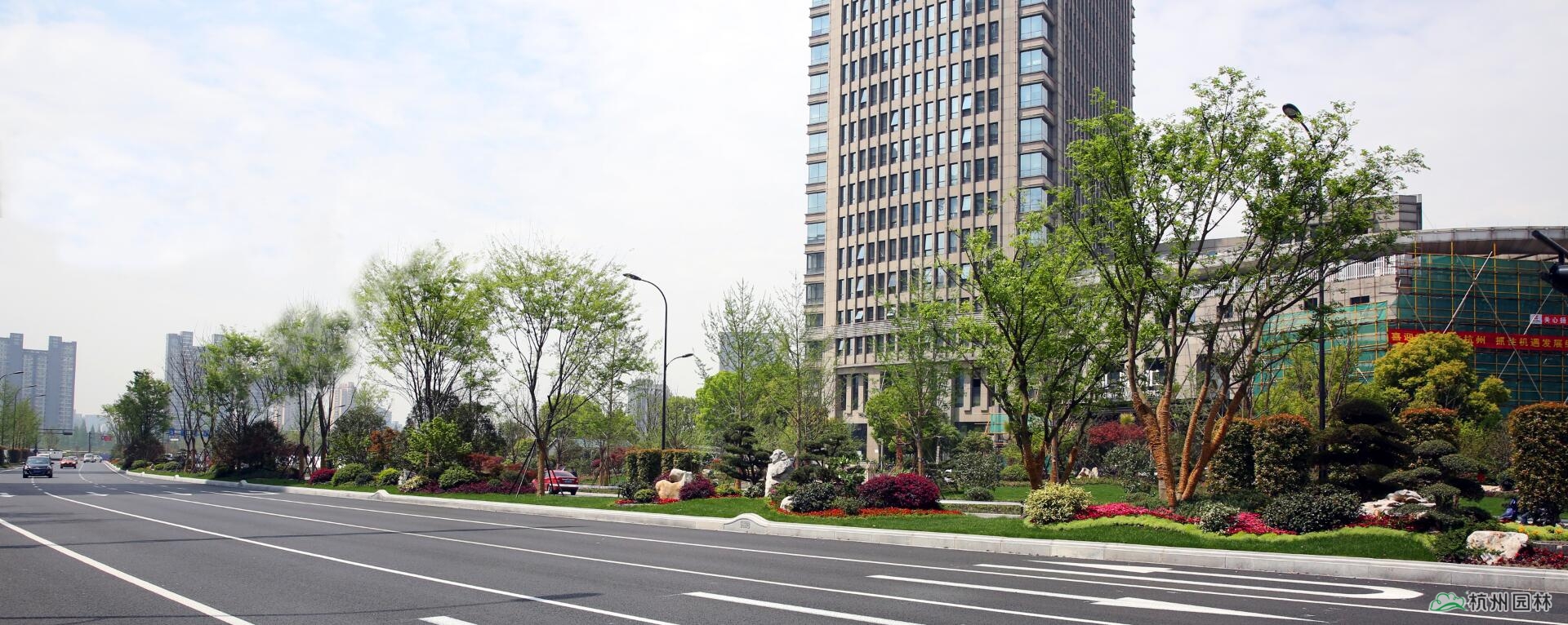新塘路位于杭州城市东部,是连通杭州火车东站与钱江新城的主要交通要道,也是杭州G20峰会的主要迎宾大道。由WB.COM承建的新塘路(新风路-新业路)综合整治工程景观绿化I标段,南起新业路,北至昙花庵路,施工内容包括绿化种植、景墙、土方工程、硬质铺装等。