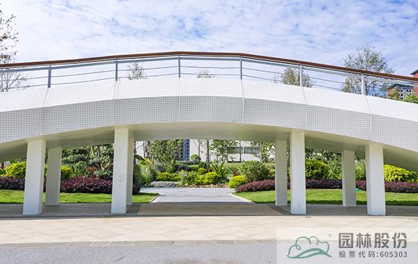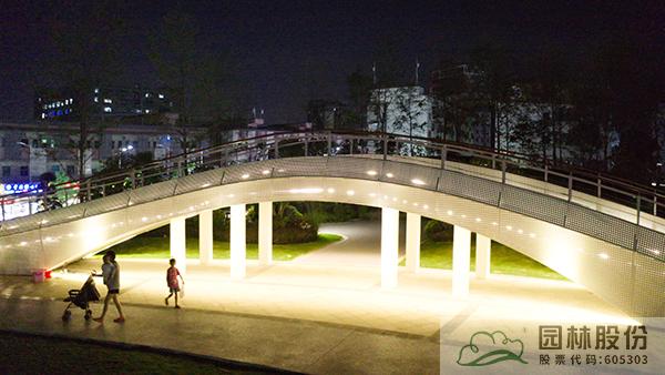 一座人行天桥,将公园景观一分为二,动静结合,相得益彰。既划分空间,又是公园景观的一部分。