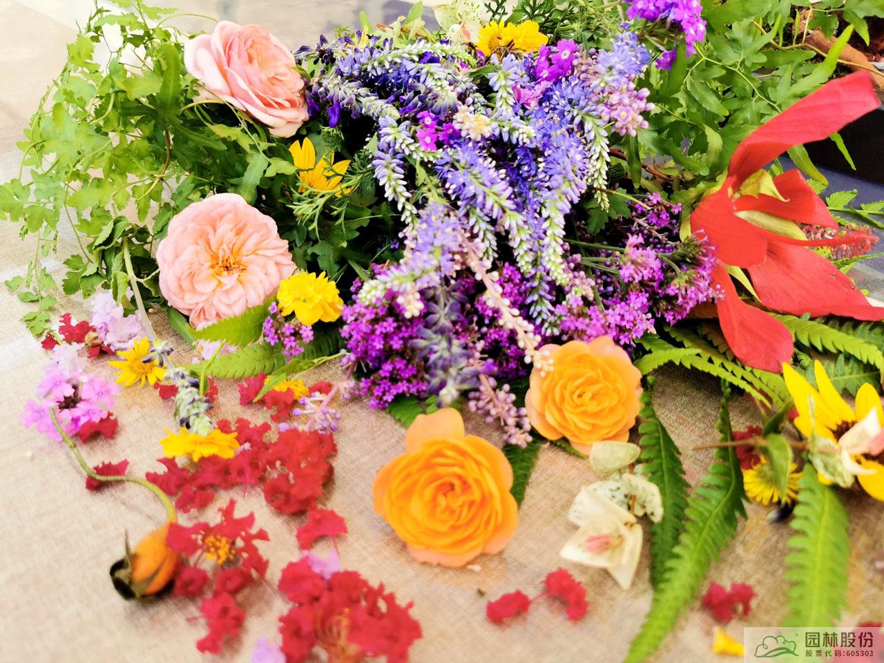 处理好的花材放置阴凉通风处,让表面水分自然散发。同品种、同色彩的植物分类放好,避免后期制作时出现颜色混淆。