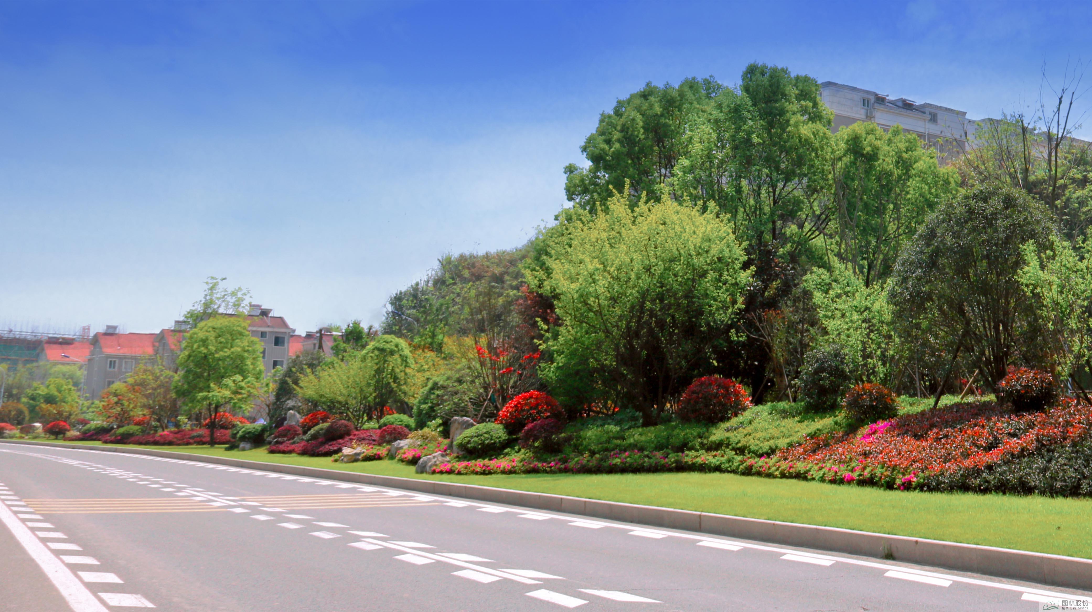 而在建德市美丽城乡精品示范道路打造工程,公司在景观营造上以优化植物配置为主,强调生态绿化;四季有花,四季常青,突出季相效果;立体绿化层次分明,突出层次效果。工程设计运用几何构图形式,形成简洁、明快、具有当地特色的道路景观,将道路绿地与城市绿地建设成为自然融入的有机整体,真正地形成“路在绿中、车在绿中、人在绿中”的生态效果,将其打造成一条建德境内独有的文化绿廊。
