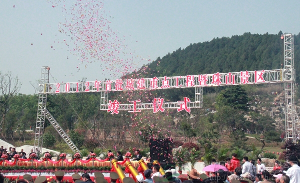 4月28日上午,2012年徐州首批城建重点工程暨珠山景区竣工仪式在美丽的珠山脚下、云龙湖畔隆重举行。徐州市领导曹新平、庄华平、李荣启、夏文达、王昊、张赴宁、徐华成,云龙区领导张引出席竣工仪式。杭州市园林绿化工程有限公司常务副总李寿仁、总经理助理吴忆明、项目经理王世新及项目部人员参加了仪式。