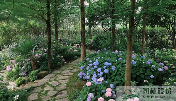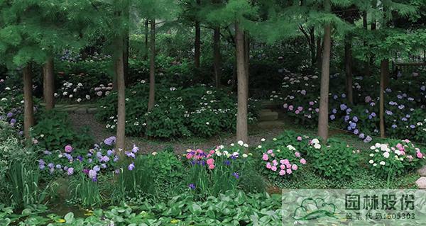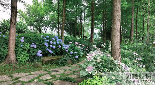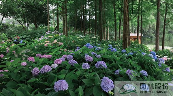 绣球园从原有的水杉林下覆盖至整个北园。