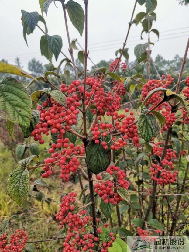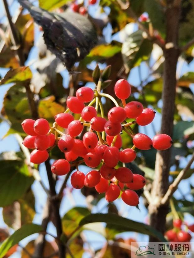 忍冬科荚蒾属,落叶灌木或小乔木。枝叶稠密,叶形美观,秋色叶红色;复伞式聚伞花序顶生,花冠白色,春季开花。开花时节,白花布满枝头,甚是壮观;观果期长,果实红色,熟时红果累累,赏心悦目,甚是壮观。生长强健,适合工程应用或庭院观赏。
