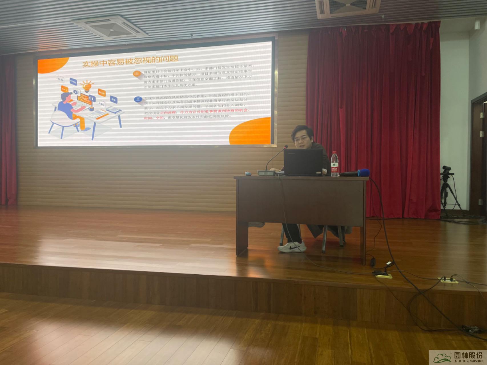 上午,公司法务魏晋围绕“前置式企业法务风控管理”工作要点,分别从事前、事中、事后控制三个方面,详细讲解了员工实操过程中各个节点容易忽视的工作;公司法律顾问林彬围绕“施工合同解除的法律风险要点及防空措施”,深入浅出的分析了建筑工程施工合同解除的情形、解除权的行使方式、解除后的法律后果及注意事项等。