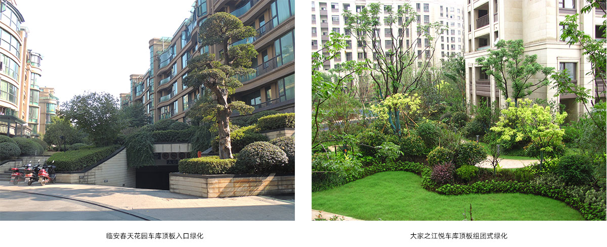 利用梁柱、承重墙等结构的设置,增加顶板覆土厚度,提高植物群落复杂程度,丰富景观多样性。并通过排水系统、轻型基质、花箱等种植方式的利用,建立形式多样、种类丰富的顶板结构景观模式。